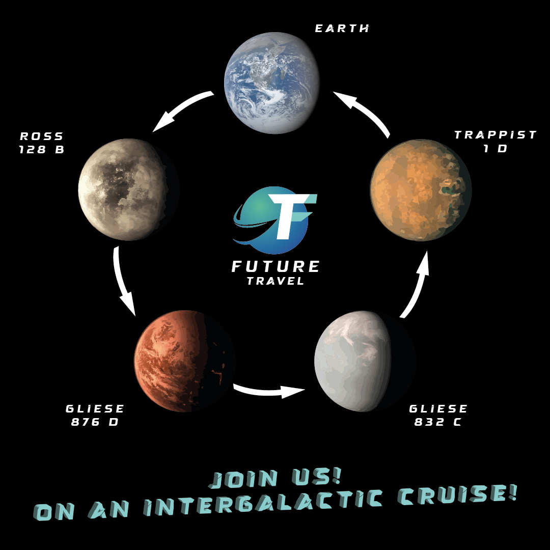 Eine Reise in die Zukunft! BENUTZTE SKILLS ILLUSTRATORPHOTOSHOP FUTURE TRAVEL Logo, Plakat und Illustrationen für ein Instagram Carousel